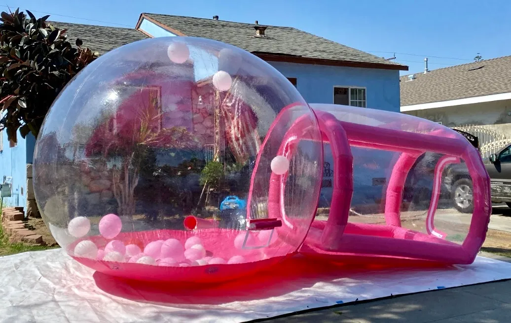 Exclusive Bubble House Design β Clear, transparent dome with a pink outer structure